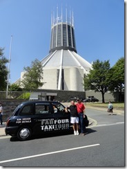 We had seen the “Fab Four Taxi Tour” cabs on the streets of Liverpool and found one outside the train station when we returned from Chester. We decided that the price was reasonable (well, not reasonable, but not outrageous) so we decided to take the tour and learn as much Beatles history as possible. It was well worth the price and a great tour. It is hard to believe in fate, karma or predestination, but you have to wonder how three boys with such tremendous talent managed to meet in an industrial town not at all known for music in the late 50”s and turn the music world on its head.